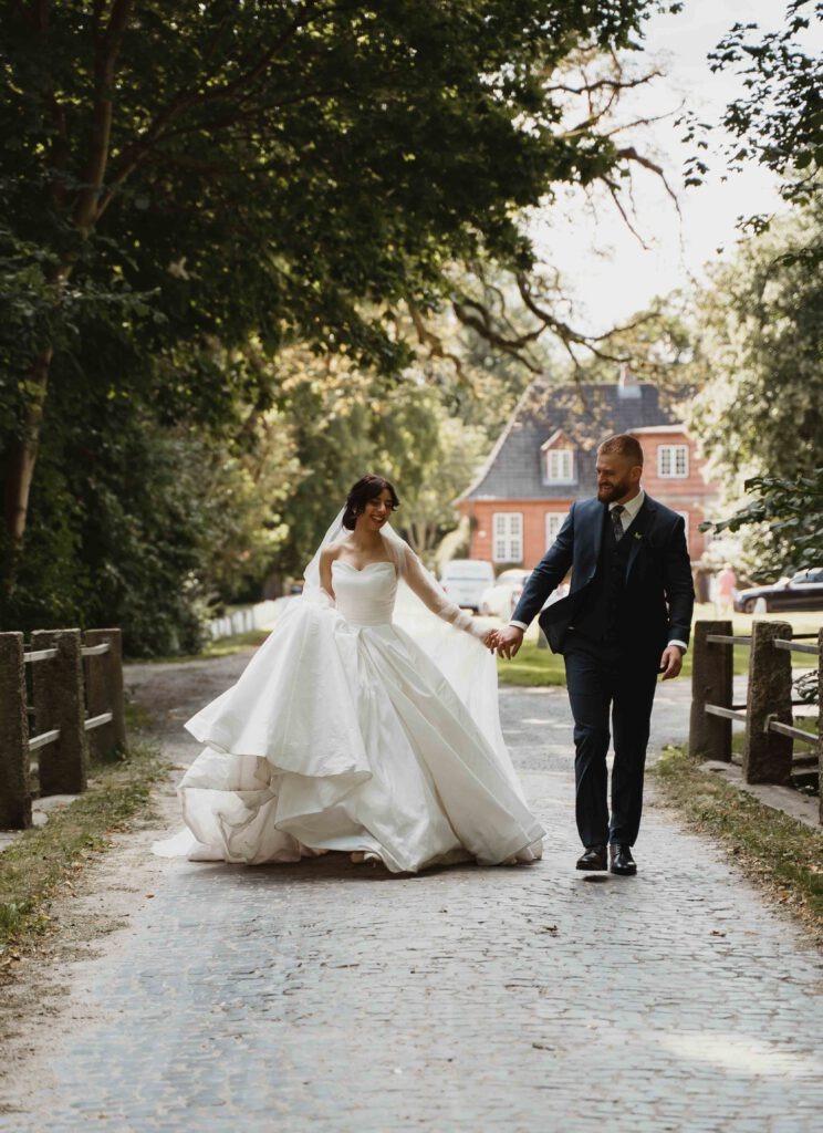 Die Hochzeit von Inna und Wlad im Gut Knoop war ein Tag voller Emotionen, Traditionen und lebendiger Momente. Schon beim Eintreffen der Gäste spürte man die Herzlichkeit und Freude, die diesen Tag begleiten sollten. Inna strahlte in ihrem eleganten Kleid, während Wlad sie mit einem liebevollen Blick empfing. Beide verband eine spürbare Ruhe und tiefe Vertrautheit, die den Tag besonders machte.